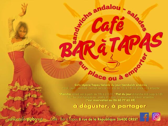 Invitez vos ami(e)s et retrouvons nous pour partager une soirée à l'atelier en dégustant les saveurs de l'Andalousie, pailla, tapas, plancha...et sangria maison en toute convivialité !